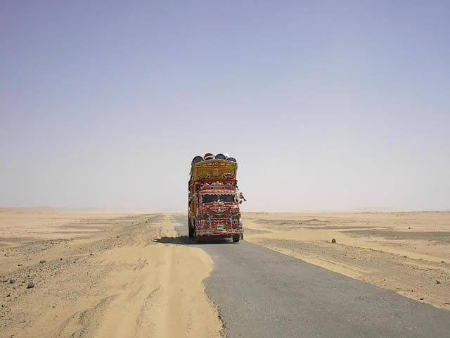Diese wird bald durch Sandwüsten abgelöst, welche die Strasse