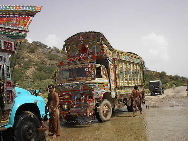 Ketten schon von weitem). Die Besitzer pflegen ihre Lastwagen wahrscheinlich