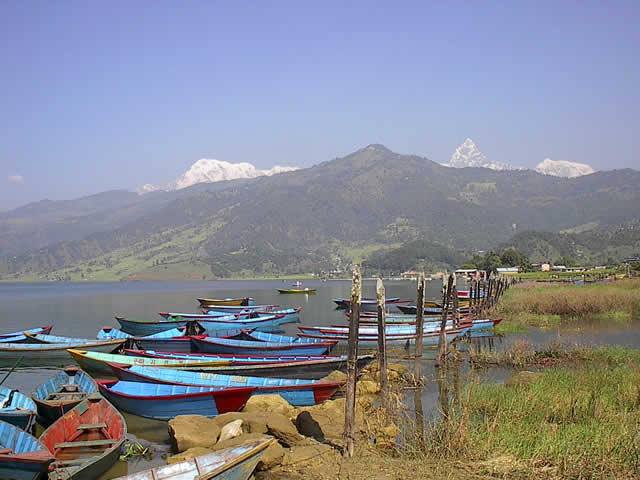 Pokhara ist einmalig gelegen; in einem grünen Tal, an einem schönen