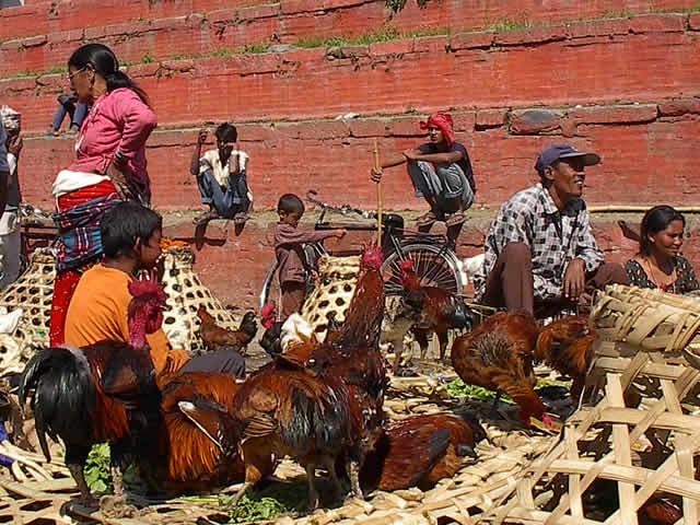 Tier nachher nach Hause nehmen. Ärmere Leute opfern einen Hahn und
