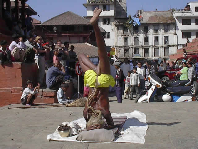 vor sich her, in einer anderen Ecke treibt ein Yogi seine verzückt