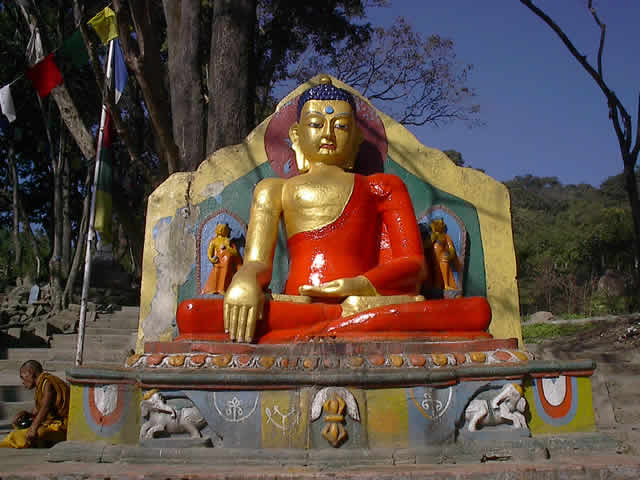 Buddha-Figur auf dem Weg nach Swayambhunath