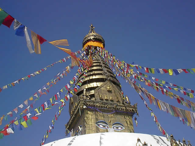 Wahrzeichen von Kathmandu ist die Stupa von Swayambhunath. Etwa 400 steile