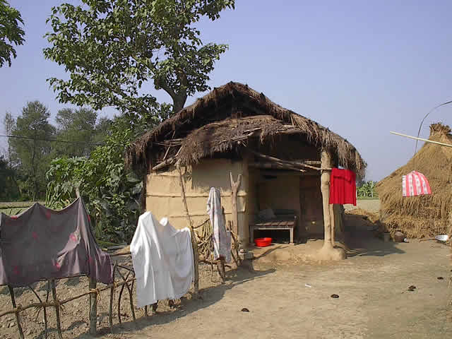 Der Weg zum Center führt durch typische Terai-Siedlungen mit ihren