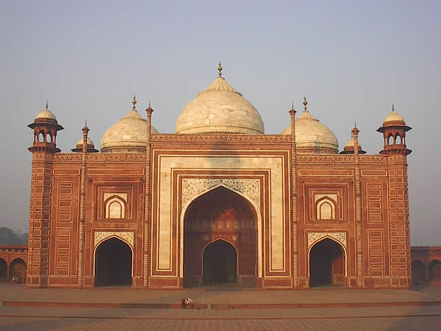 Eine der seitlichen Moscheen des Taj Mahal