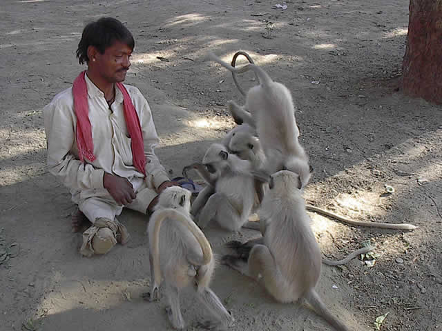 Dieser Bettler hat weniger Angst vor den Affen