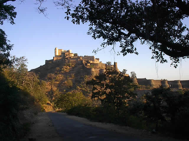 Das Fort von Kumbhalgarh in den ersten Sonnenstrahlen