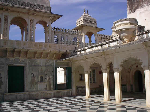 Ein kleiner Innenhof im Stadtpalast von Udaipur