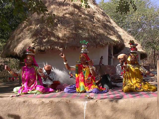 bestickte Trachten an und, wie wir das in Rajastan oft sahen, elfenbeinfarbene