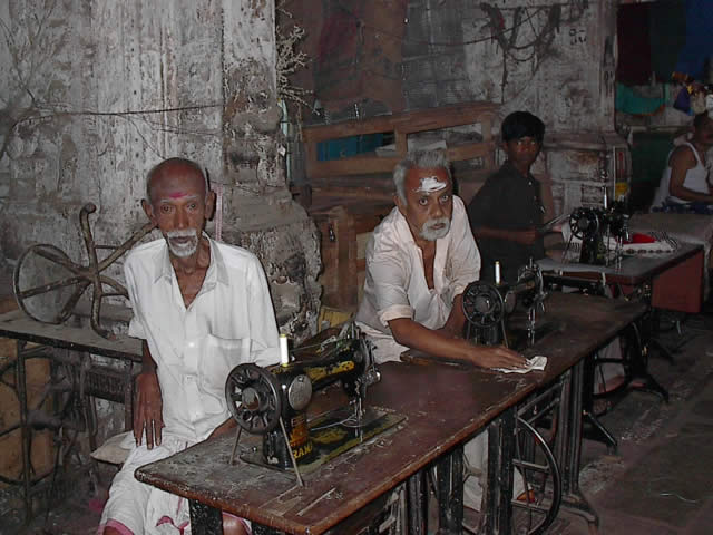 Im Basar vom Madurai warten die Schneider auf
