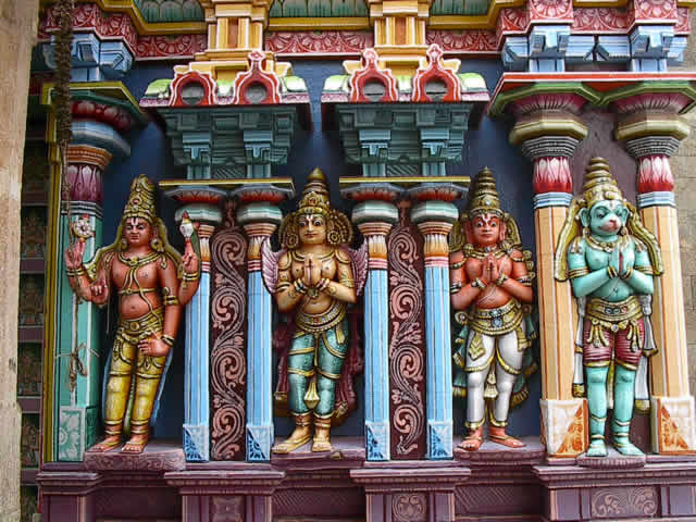 Skulpturen im Tempel von Srirangam