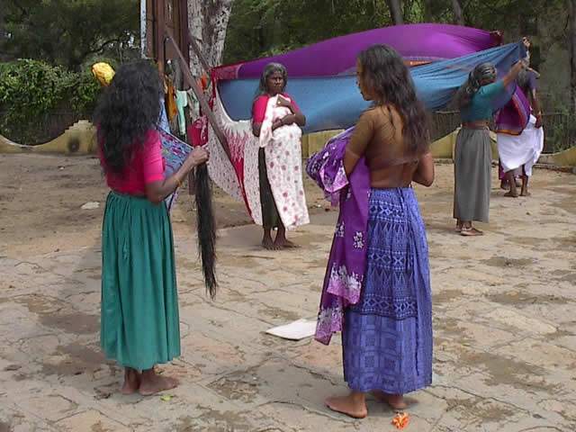 Frauen beim Trocknen der Saris (und wie man
