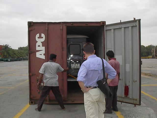 im Hotel abgeholt und zum Containerlager gefahren, das Siegel wurde geöffnet,