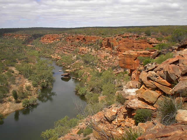 Murchison River, welcher sich teilweise bis zu 100 Meter tiefe, spektakuläre