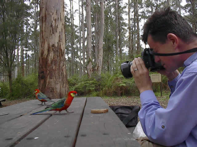 bunten Papageien füttern, die gar nicht schüchtern sind und