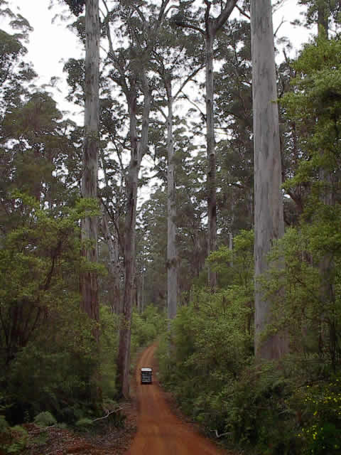 die riesigen Karri-Bäume wachsen. Diese Giganten unter den Bäumen