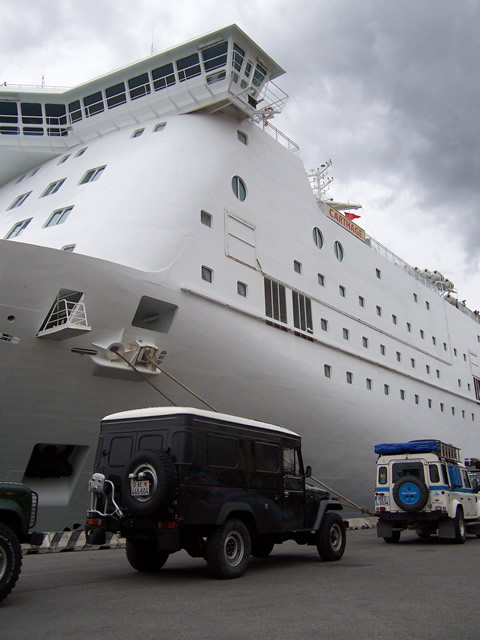Vor der riesigen Fähre C.F.Carthage