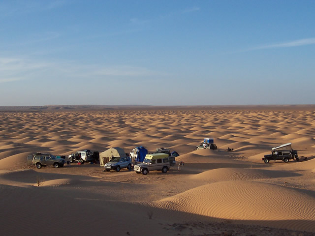 Zwischen hohen Dünen haben wir unser Nachtlager aufgeschlagen und